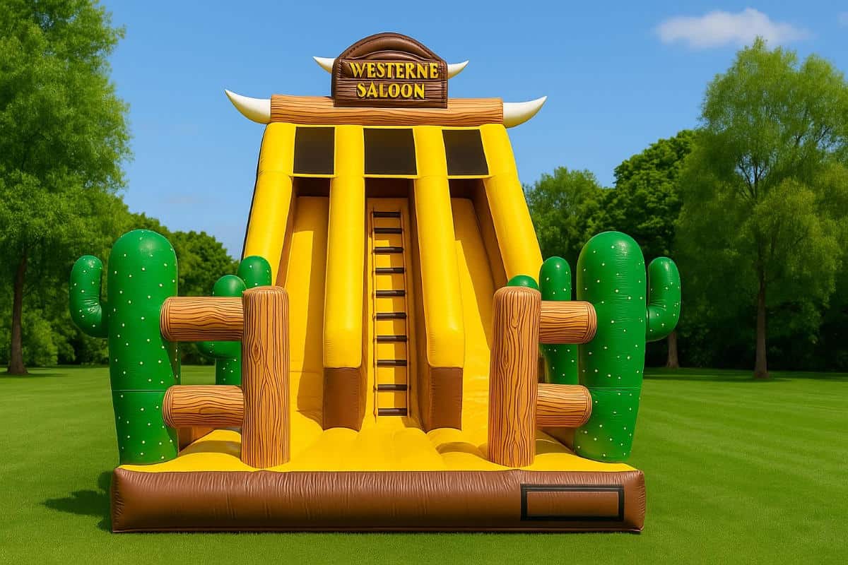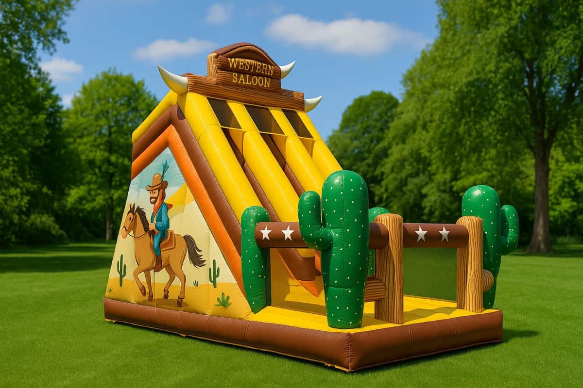 Dopřejte dětem nezapomenutelnou zábavu s naším tematickým skákacím hradem Wild West! Tento atraktivní hrad ve stylu Divokého západu je ideální volbou pro dětské oslavy, firemní akce, školní dny, poutě i soukromé zahradní párty.